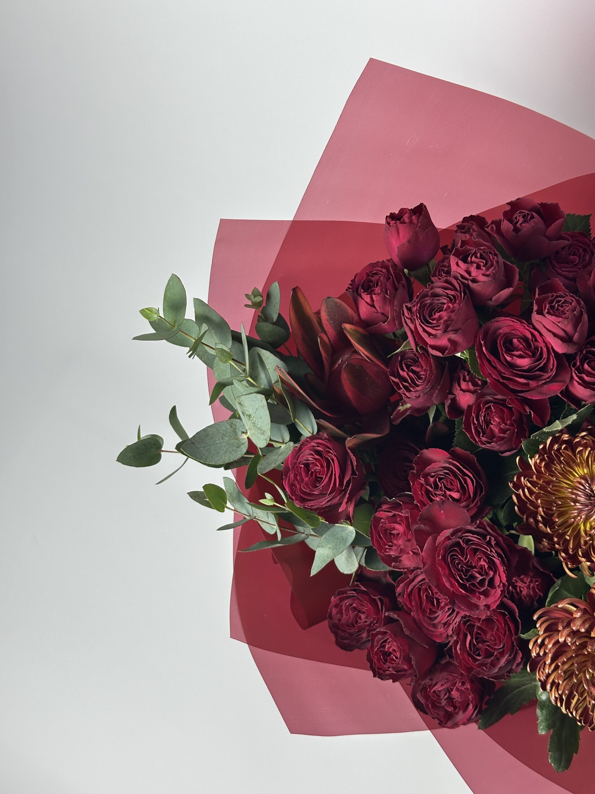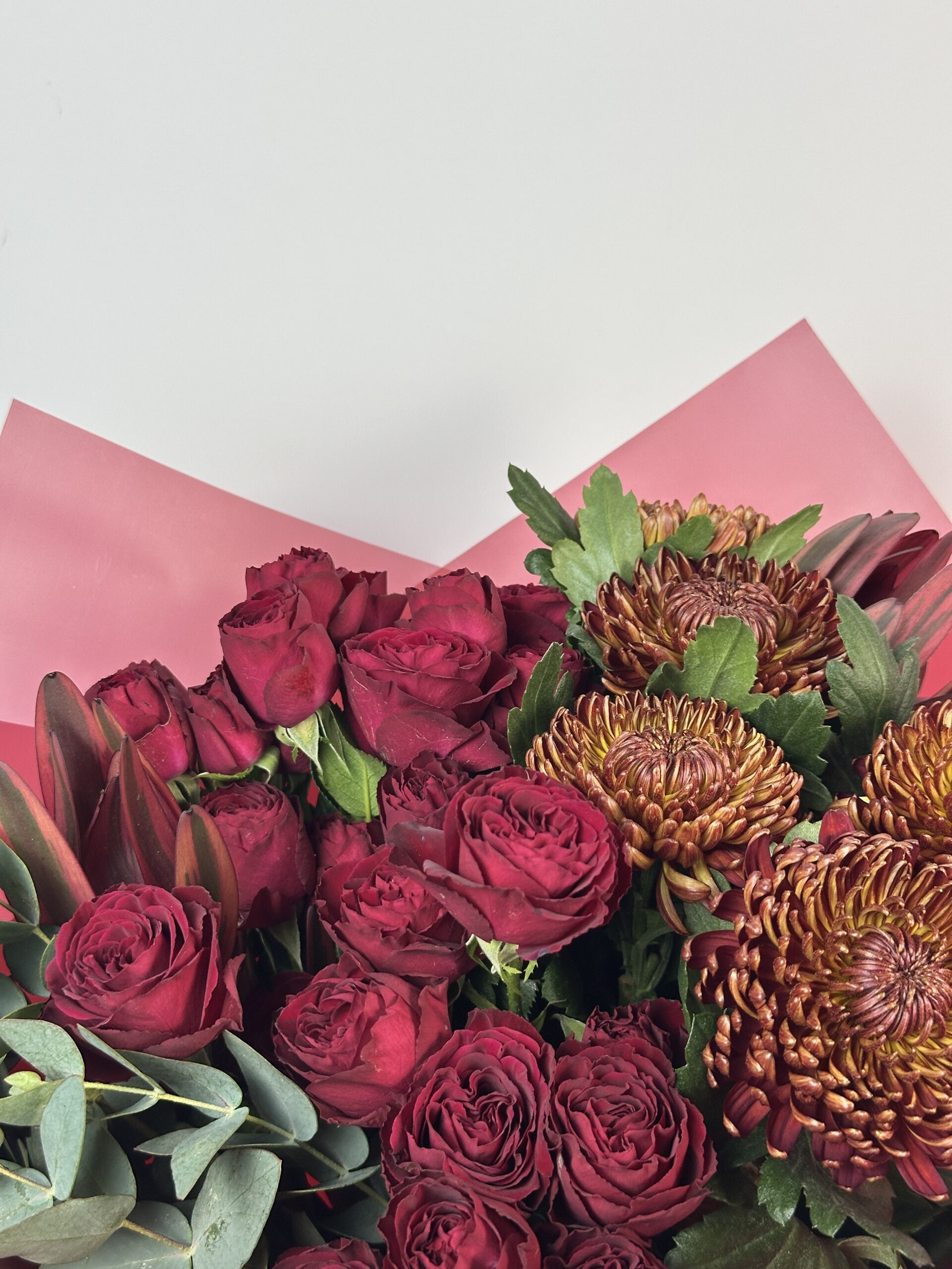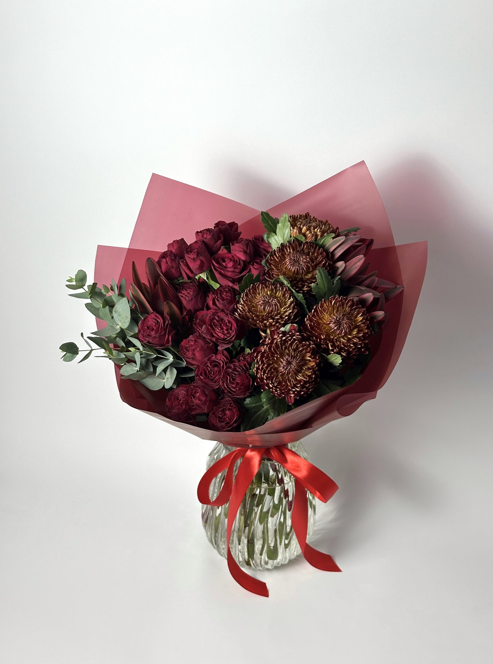 В случае отсутствия отдельных цветов в наличии мы оставляем за собой право заменить их на альтернативные схожие сорта, которые могут отличаться по цвету, но при этом гармонично соответствуют общей цветовой палитре и стилю букета.