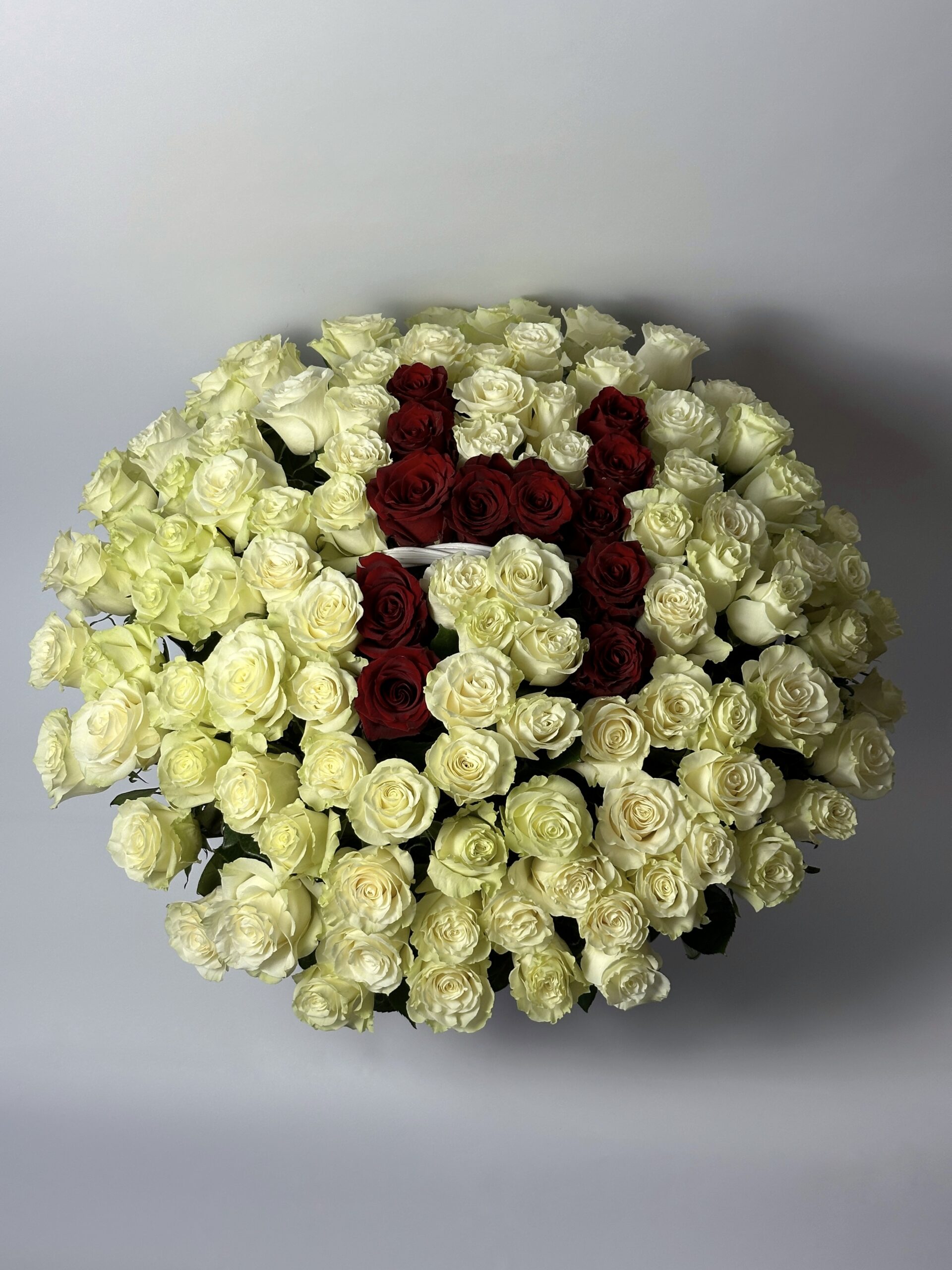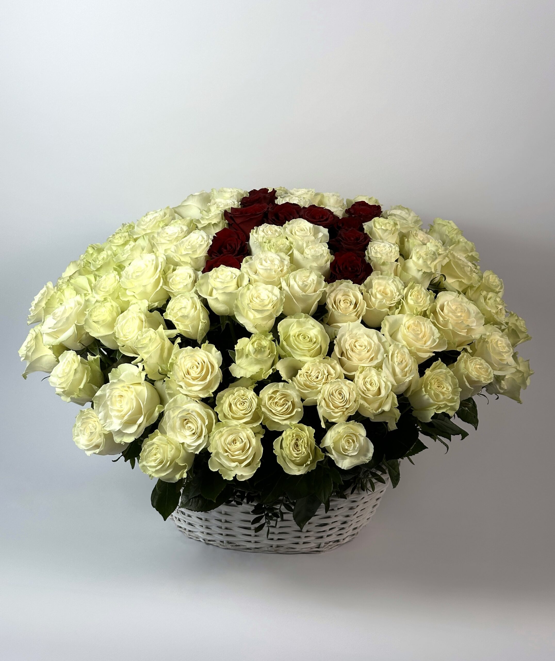 В состав корзины входит 113 крупных эквадорских роз. Диаметр композиции 70-90-см. Буква может быть персональной. ДОСТУПЕН ПРЕДЗАКАЗ